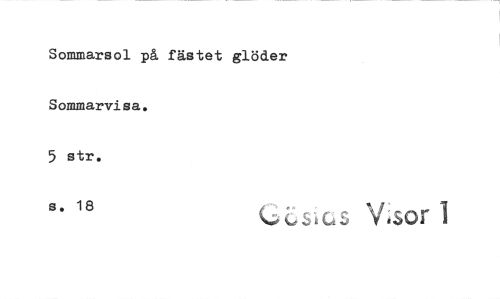 //// Sommarsol på fästet glöder Sommarvisa. //// 5 str. //// *'QCsiGs Visor 1