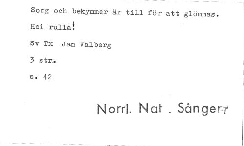 //// Sorg och bekymmer är till för att glömmas. Hei rulla! //// Sv Tx Jan Valberg 3 str. s. 42 //// Norr!- Nat . Sånger