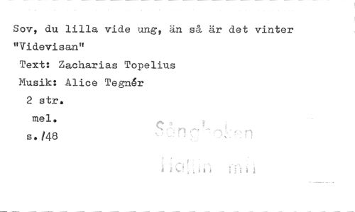 //// Sov, du lilla vide ung, än så är det vinter "Videvisan" //// Text: Zacharias Topelius Musik: Alice Tegnér 2 str. //// mel. s. /4S //// n //// i i