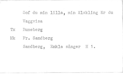 //// Sof du min lilla, min älskling är du Vaggvisa Tx Runeberg Mk Fr. Sandberg //// Sandberg, Enkla sånger H 1.