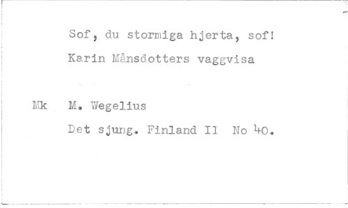 //// Sof, du stormiga hjerta, sof! Karin Månsdotters vaggvisa //// M. Wegelius //// Det sjung. Finland II No 4o.