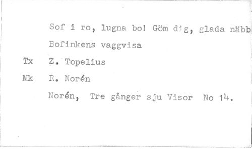 //// Sof i ro, lugna bo! Göm dig, glada näbb Bofinkens vaggvisa Tx Z. Topelius //// Mk R. Norén [ //// Norén, Tre gånger sju Visor No 14. j