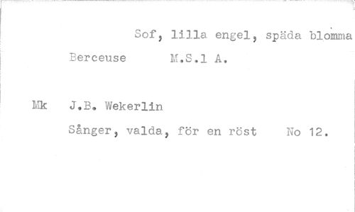 //// Sof, lilla engel, späda blomma Berceuse M.S.l A. //// J.B. Wekerlin //// Sånger, valda, för en röst No 12.