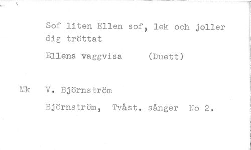 //// Sof liten Ellen sof, lek och joller dig tröttat //// Ellens vaggvisa (Duett) //// V. Björnström //// Björnström, Tvåst. sånger No 2.