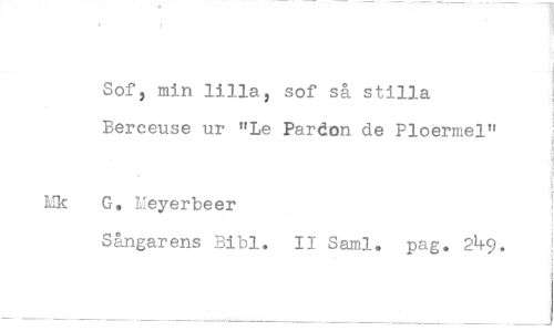 //// Sof, min lilla, sof så stilla Berceuse ur "Le Pardon de Ploermel" //// G. Meyerbeer //// Sångarens Bibi. II Sami. pag. 24^.