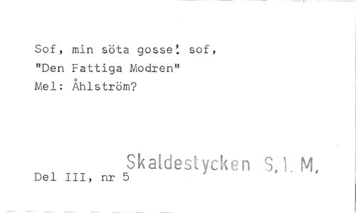 //// Sof, min söta gossel sof, "Den Fattiga Modren" //// Mel: Åhlström? //// Skatdest veken SJ M, //// Del 111, nr 5