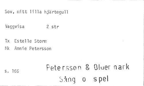 //// Sov, mitt lilla hjärtegull //// Vaggvisa 2 str //// Tx Estelle Storm Mk Annie Petersson //// s. 166 rsson 3 //// Srtng o //// Otuer nark s pe)