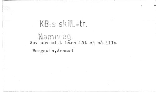 //// KB.s skiH.-tr. //// Namnreg. //// Sov sov mitt barn låt ej så illa Bergquin,Arnaud