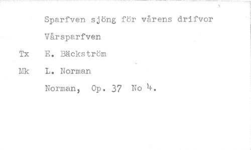 //// Sparfven sjöng för vårens drifvor Vårsparfven E. Bäckström L. Norman //// Norman, Op. 37 No 4.