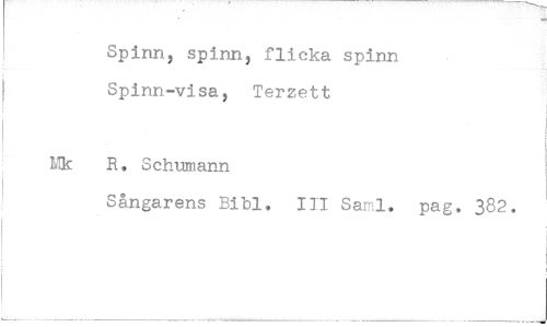 //// Spinn, spinn, flicka spinn //// Spinn-visa, Terzett //// Mk R. Schumann //// Sångarens Bibi, 111 Sami. pag. 382.