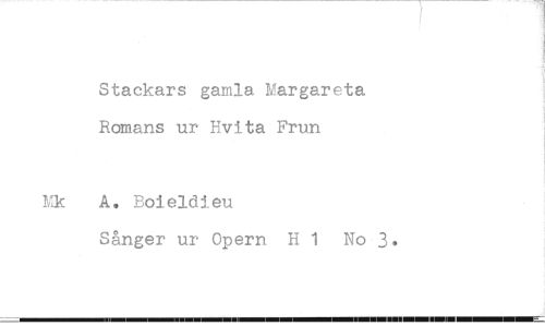 //// Stackars gamla Margareta Romans ur Hvita Frun //// A, Boieldieu //// Sånger ur Opern H 1 No