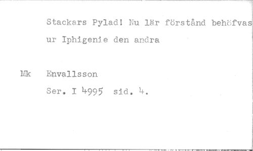 //// Stackars Pylad! Nu lär förstånd behofvas ur Iphigenie den andra //// Envallsson //// Ser. I 4995 sid. 4.