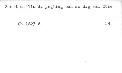 //// Statt stilla du. yngling och se dig väl före //// Ob 1823 d 19