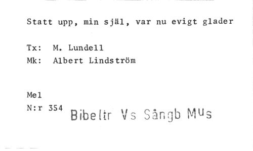 //// Statt upp, min själ, var nu evigt glader //// Tx: M. Lundell //// Mk: Albert Lindström //// Mel //// N:r 354 //// Bibettr Vs Sångb Mu