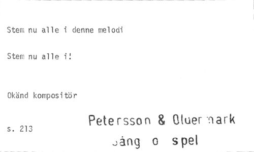 //// Stem nu alle i denne melodi //// Stem nu al le ii Okänd kompositör //// Petersson & Gtuer nark //// s. 213 //// jång o spet