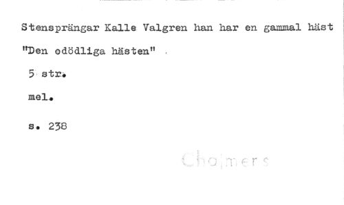 //// Stensprängar Kalle Valgren han har en gammal häst "Den odödliga hästen" //// 5 str* mel„ //// s. 238 //// . r ^