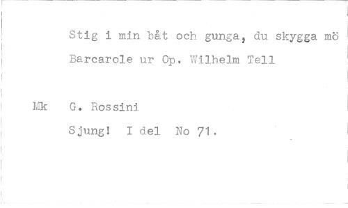 //// J //// i //// Stig i min båt och gunga, du skygga mö Barcarole ur Op. Wilhelm Tell //// Mk G. Rossini //// Sjung! I del No 71 -