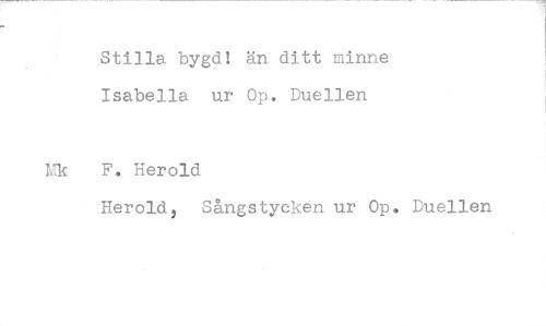 //// Stilla bygd! än ditt minne //// Isabella ur Op, Duellen //// F, Herold //// Herold, Sångstycken ur Op. Duellen