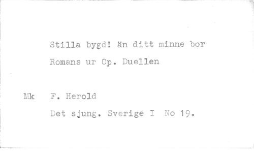 //// Stilla bygd! än ditt minne bor //// Romans ur Op. Duellen //// F. Herold //// Det sjung. Sverige I No 19.