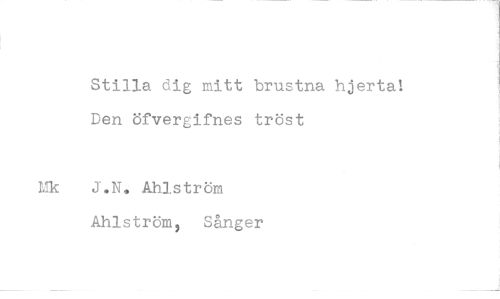 //// Stilla dig mitt brustna hjerta! Den öfvergifnes tröst //// J.N. Ahlström Ahlström, Sånger