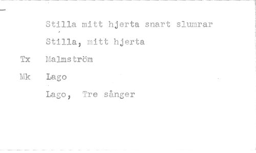 //// Stilla mitt hjerta snart slumrar Stilla, mitt hjerta Tx Malmström Mk Lago //// Lago, Tre sånger