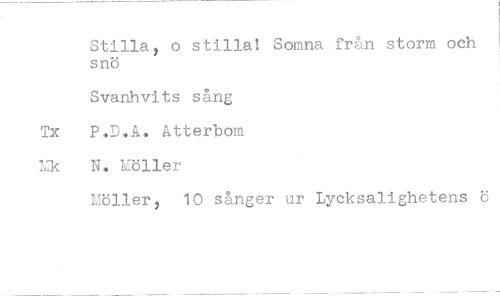//// Stilla, o stilla! Somna från storm och //// snö //// Svanhvits sång Tx P,D.A. Atterbom Lik N. Möller //// Möller, 10 sånger ur Lycksalighetens ö