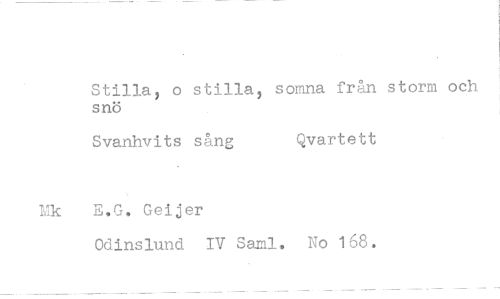 //// Stilla, o stilla, somna från storm och //// snö //// Svanhvits sång Qvartett //// E.G, Geijer //// Odinslund IV Sami, No 168.