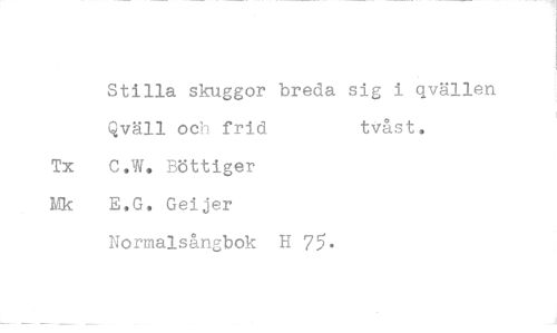//// Stilla skuggor breda sig i qvällen //// Qväll och frid tvåst, //// C.W. Böttiger E.G, Geijer Normalsångbok H 75*