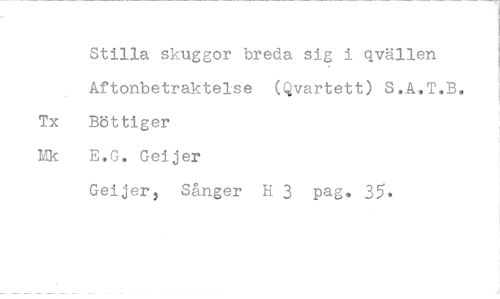 //// Stilla skuggor breda sig i qvällen Aftonbetraktelse (Qvartett) S,A,T,B. Tx Böttiger Mk E.G. Geijer //// Geijer, Sånger H 3 pag. 35*