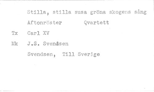 //// Stilla, stilla susa gröna skogens sång //// Aftonröster Qvartett //// Tx Carl XV Mk J.S. Svendsen //// Svendsen, Till Sverige