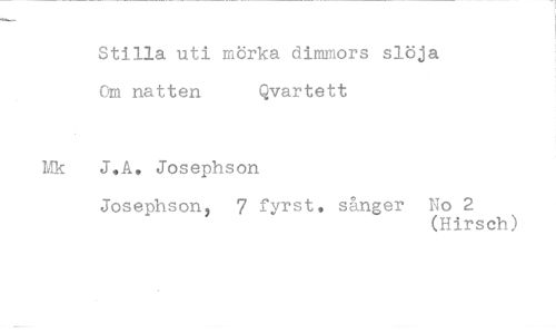 //// Stilla uti mörka dimmors slöja //// Om natten Qvartett //// J.A. Josephson //// Josephson, 7 fyrst, sånger No 2 //// (Hirsch)