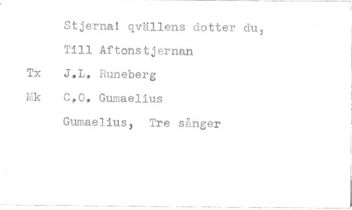//// Stjerna! qvällens dotter du, Till Aftonstjernan J.L, Runeberg C,0. Gumaelius Gumaelius, Tre sånger