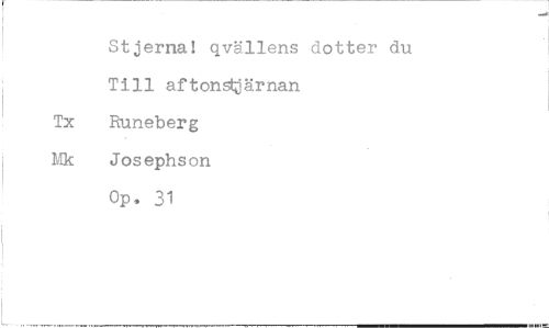//// Stjerna! qvällens dotter du Till aftonstjärnan Tx Runeberg Mk Josephson Op, 31