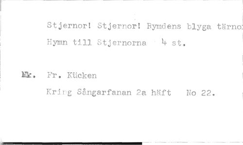 //// Stjernor! Stjernor! Rymdens blyga tärno Hymn till Stjernorna 4 st, //// Fr, Kticken //// Krirg Sångarfanan 2a häft No 22,
