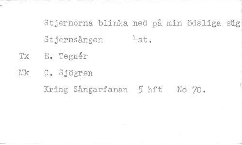 //// St jer norna blinka ned på min ödsliga stig St jemsången 4st. //// E. Tegnér C. Sjögren //// Kring Sångarfanan 5 hft No 70.