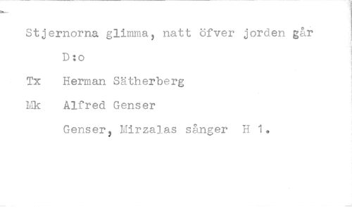 //// Stjernorna glimma, natt öfver jorden går D :o //// Tx Herman Sätherberg Mk Alfred Genser //// Genser, Mirzalas sånger H 1.