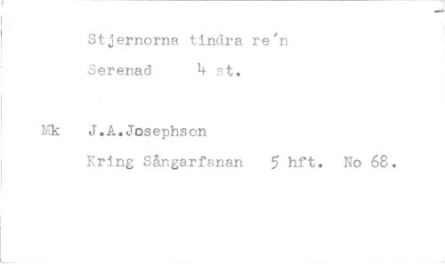 //// Stjernorna tindra re'n Serenad 4 st, //// Mk J.A.Josephson //// Kring Sångarfanan 5 hft, No 68