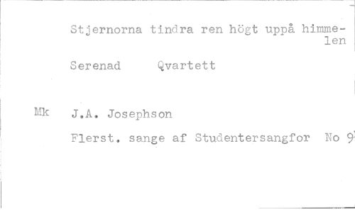 //// Stjernorna tindra ren högt uppa himme- //// len //// Serenad Qvartett //// J.A. Josephson //// Flerst. sange af Studentersangfor No 9'