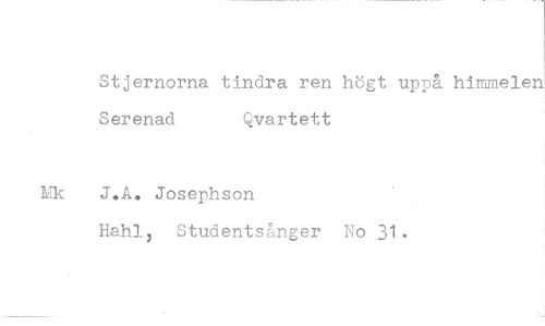 //// Stjernorna tindra ren högt uppå hinmielen Serenad Qvartett //// J.A. Josephson //// Hahl, Studentsånger No 31.