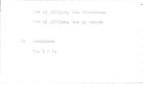 //// Jr o ej glädjen, ..-ro ej glädjen, //// Lk Josephson C). 1 H 2. //// den försvinner tro ej sorgen