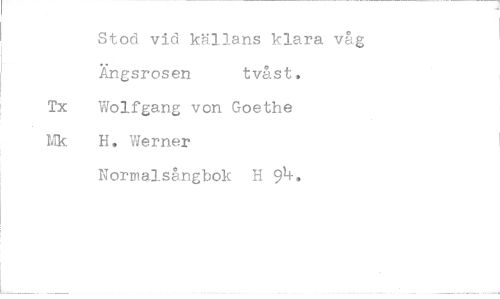 //// Stod vid källans klara våg Ängsrosen tvåst, //// Tx Wolfgang von Goethe Mk H, Werner //// Normalsångbok H $4,