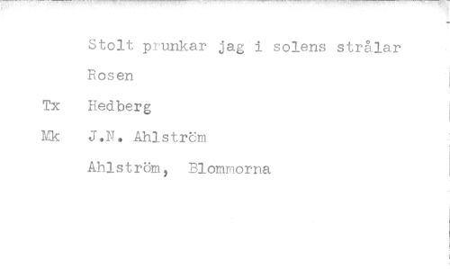 //// Stolt prunkar jag i solens strålar Rosen Tx Hedberg Mk J,N. Ahlstrcm //// Ahlström, Blommorna
