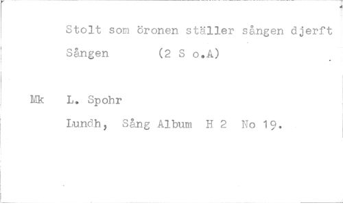 //// Stolt som öronen ställer sången djerft Sången (2 S o.A) //// L, Spohr //// Lundh, Sång Album H 2 No 19.