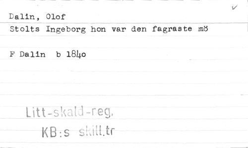 //// Dalin, Olof //// Stolts Ingeborg hon var den fagraste m8 F Dalin b 18^0