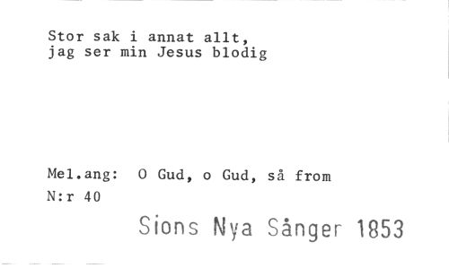 //// Stor sak i annat allt, jag ser min Jesus blodig //// Mel.ang: 0 Gud, o Gud, så from N:r 40 //// Sions Nya Sånger 1853