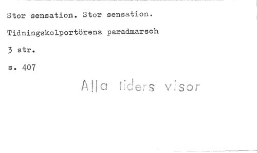 //// Stor sensation. Stor sensation. TiAningskolportörens paradmarsch //// 3 str. s. 407 //// A {[a tiders visor