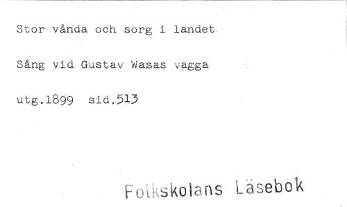 //// Stor vånda och sorg i landet Sång vid Gustav Wasas vagga utg.1899 sid.513 //// Ftnkskotans Läsebok