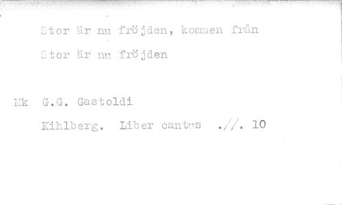 //// Stor är nu. fröjden, kommen Stor är nu fröjden //// k G.G. Gastoldi //// Kihlberg. Liber cant^s
