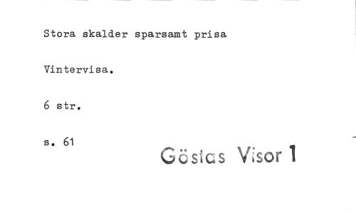 //// Stora skalder sparsamt prisa //// Vintervisa. //// 6 str. s. 61 //// Gösics V^sor