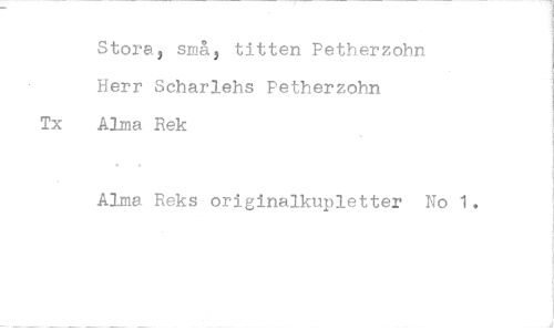 //// Stora, små, titten Petherzobn Herr Scharlehs Petherzohn Alma Rek //// Alma Reks originalkupletter No